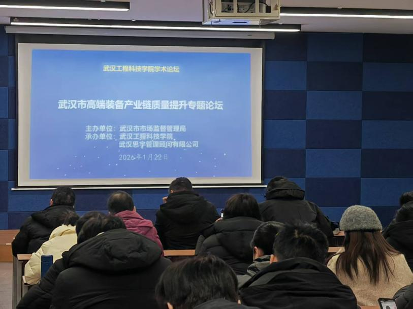 由武汉市市场监督管理局主办、武汉工程科技学院与武汉思宇管理顾问有限公司承办的市级质量提升项目——“武汉工程科技学院学术论坛·武汉市高端装备产业链质量提升专题论坛”。