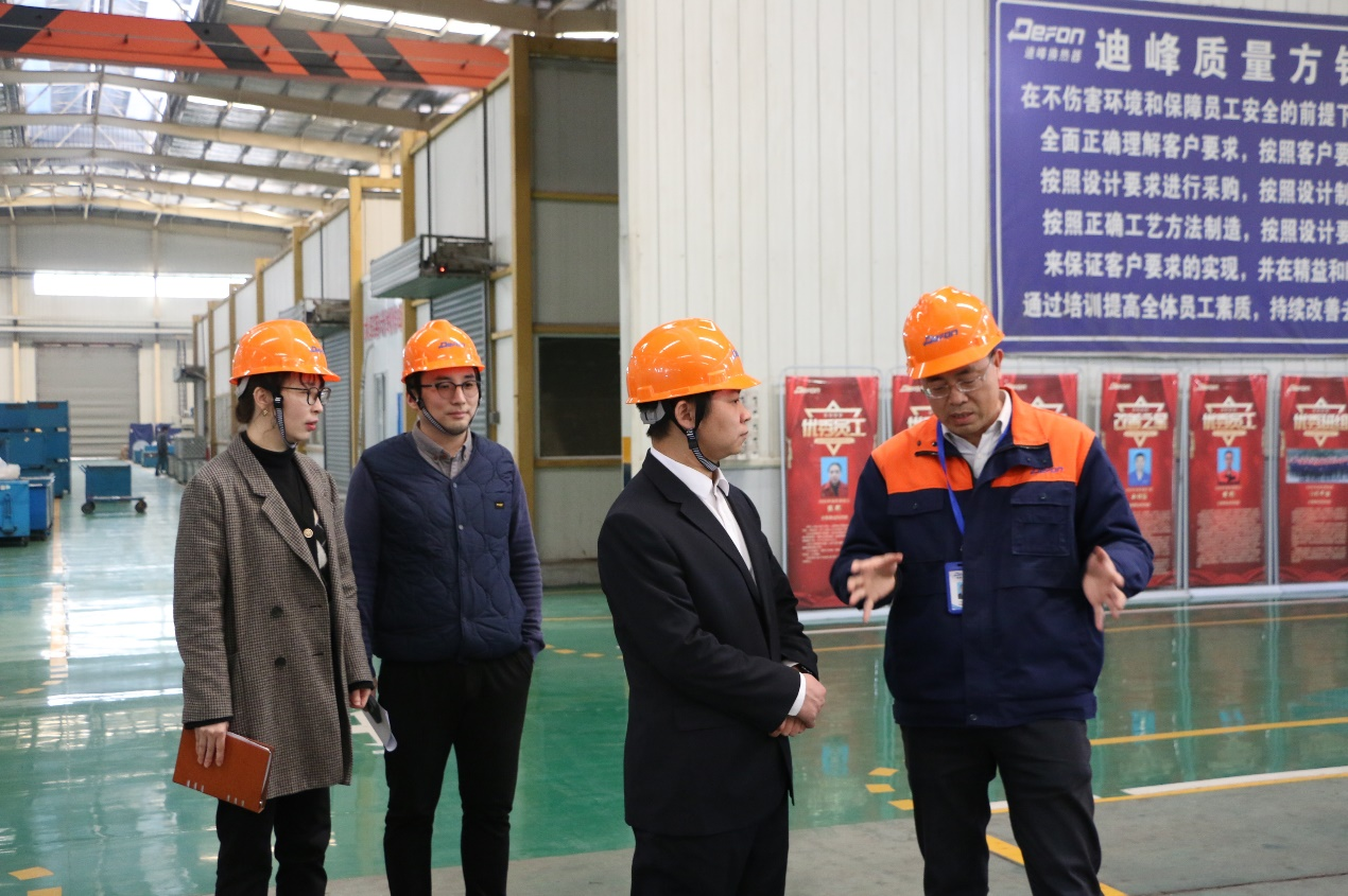 在湖北迪峰换热器股份有限公司人力资源部部长刘芳,公司技术总监卢于亮陪同下,我校调研组一行进行了参观。在参观过程中,校企三方就“订单班”人才培养、企业用人需求、大学毕业生福利保障、双师型师资队伍建设、认知实习等工作进行了深入探讨,并达成了共识。