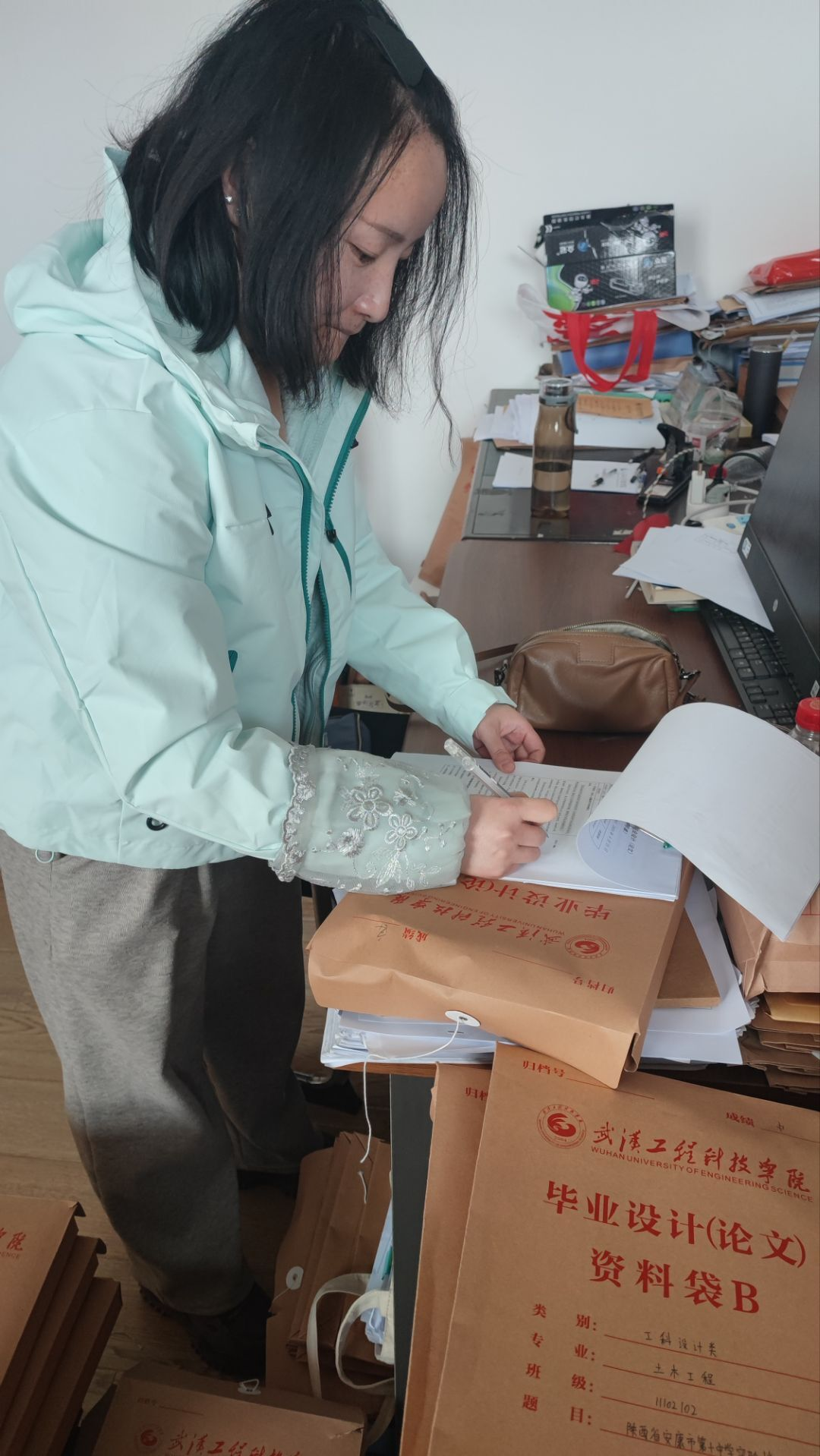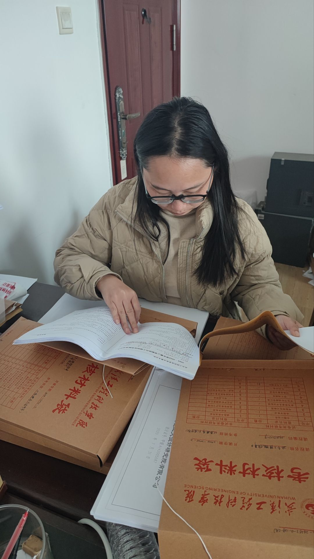 经过大家几个小时的紧张工作,首次完成了第一次检查工作,土木工程系将以最好质量将资料归档。